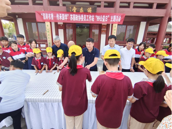 本次活動,特邀劉氏毛筆制作技藝第六十七代傳承人劉永杰現場講解和演繹毛筆的制作過程,40多名中小學生親身體驗,親手制作,更深一步了解毛筆的制作工序,讓毛筆制作技藝不斷發揚光大,讓非遺文化不斷的傳承下去,激勵學生們寫好中國字,做好中國人。委員們和學子們在非遺傳承人的指導下,共同制作“蘇園狀元筆”。
