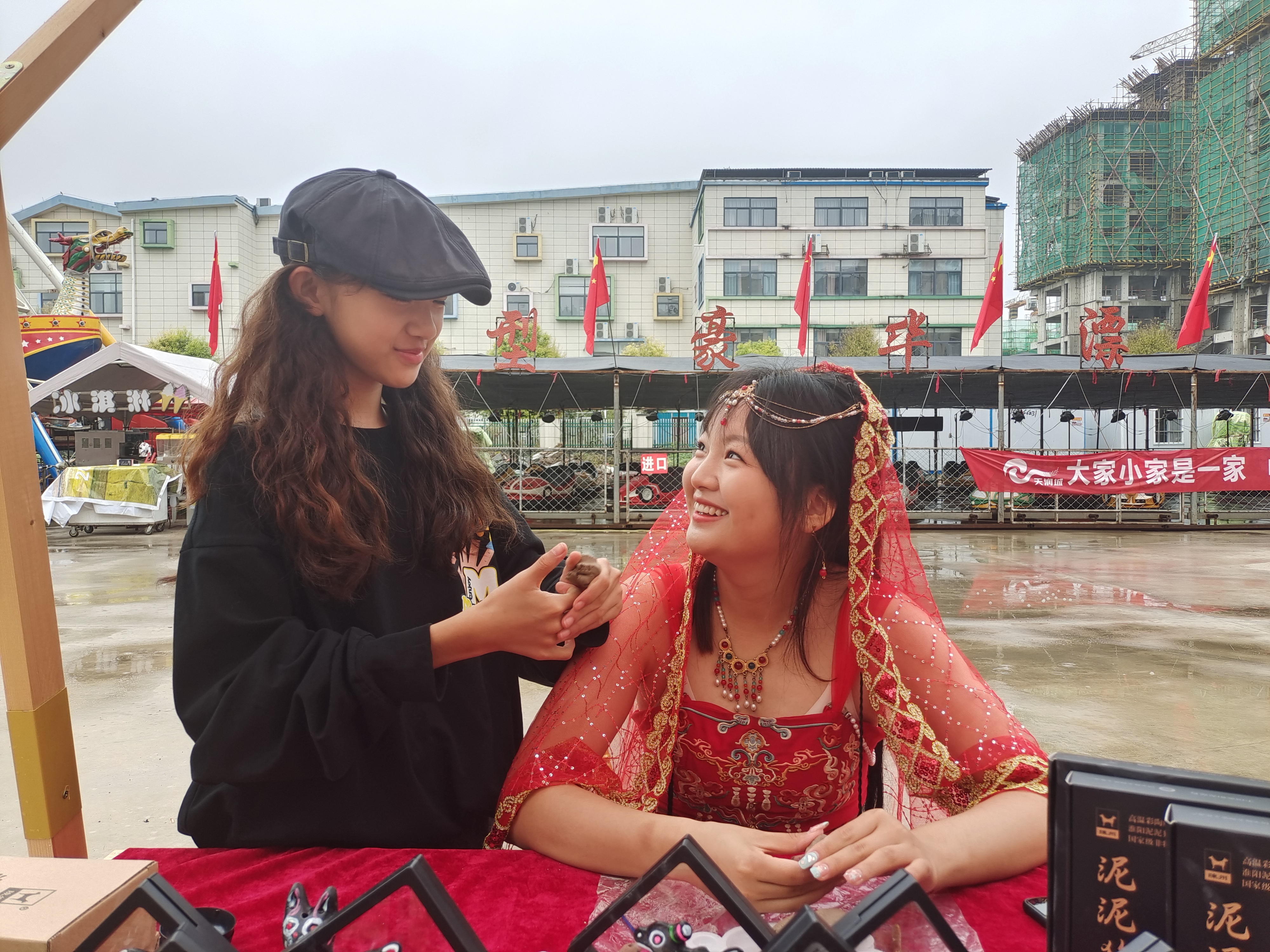 伴隨著開場舞《盛世歡歌》,“潮流雙節·中秋游園會暨國慶嘉年華”活動啟動儀式正式拉開帷幕。泥泥狗、剪紙、書法、繪制團扇……現場工作人員有的身著少數民族服裝,有的身著漢服,用親手制作的方式展示著傳統非物質文化遺產獨有的韻味,吸引著來往的大人小孩駐足。有的甚至親自參與制作,捏泥泥狗、寫毛筆字、畫傳統團扇……現場歡笑不斷,大家在親自動手的過程中充分感受著中國傳統節日的豐富文化內涵。