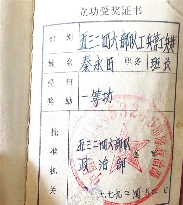 談及應(yīng)征入伍的往事,這里還有一個小插曲。“1974年年底,在縣武裝部組織的一次學(xué)習(xí)培訓(xùn)期間,我在院子里撿到一張參軍報名表,便毫不猶豫地填寫好交了上去。”秦永田告訴記者,后來,在村干部的幫助下,他順利通過入伍前的體檢和政審,如愿成為一名新兵,年僅19歲。