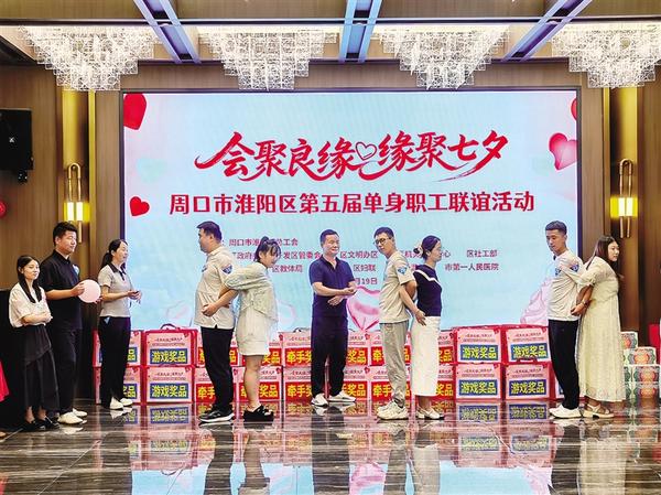 本報訊(記者 侯俊豫 通訊員 張艷榮 文/圖) 8月19日,淮陽區第五屆單身職工聯誼活動在希爾頓花園酒店舉行。區人大常委會副主任孟華,區政協副主席劉衛潔,區政府黨組成員、區總工會主席丁永華,周口先進制造業開發區管委會主任張健出席活動。70余名單身職工共赴“甜蜜之約”。
