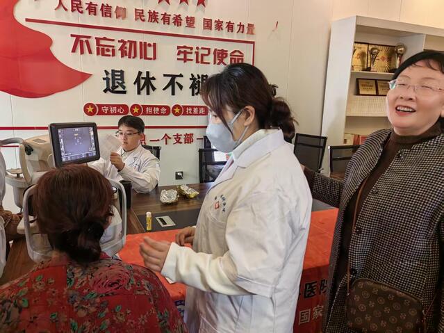 活動(dòng)現(xiàn)場(chǎng)設(shè)置視力檢測(cè)區(qū)、眼底篩查區(qū)等功能區(qū)域,醫(yī)護(hù)人員為老同志進(jìn)行全面眼部健康檢查和評(píng)估,重點(diǎn)篩查白內(nèi)障、青光眼等老年高發(fā)眼病,并現(xiàn)場(chǎng)為老同志講解有關(guān)眼健康防護(hù)知識(shí)。針對(duì)檢測(cè)中發(fā)現(xiàn)的疑似白內(nèi)障患者及其他眼疾者,醫(yī)護(hù)團(tuán)隊(duì)現(xiàn)場(chǎng)建立健康檔案并預(yù)約復(fù)診通道,使受檢者有所醫(yī)、有所治,彰顯人文關(guān)懷。