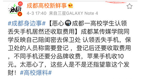 四川一高校設立“失物招領費”引爭議 律師:不違法