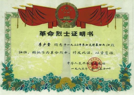 李少堂,河南鹿邑人,1925年背井離鄉流落到連云港,1928年加入中國共產黨,1930年任中共東海中心縣委軍事委員,參與領導大村暴動失敗后,被國民黨反動派殺害。