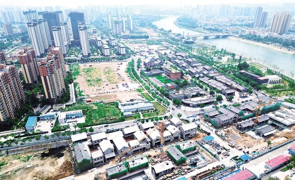 7月10日,關帝廟歷史文化街區(qū)城市更新改造項目二期工程施工現(xiàn)場無人機航拍圖。據(jù)了解,經(jīng)過一年多的緊張施工,相關建筑主體工程墻體填充已完成,屋頂覆瓦項目過半。