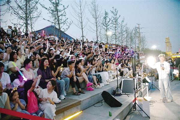6月23日晚,市民在沙潁河畔避暑、聽歌。當晚,在中心城區關帝廟景區前,人們聚集在燈光燦爛的沙潁河畔消暑納涼,更有喜愛唱歌的人們聚集在一起,以歌聲暢度浪漫夜晚,成為今夏中心城區沙潁河畔一道美麗的風景線。