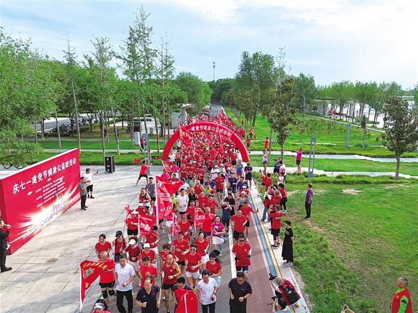 為慶祝中國共產黨成立104周年,弘揚偉大建黨精神,推動全民健身與公益慈善事業發展,6月29日清晨,我市710名跑友聚集在風景秀麗的市城鄉一體化示范區引黃調蓄湖畔,共同參與慶“七一”健康公益跑活動。
