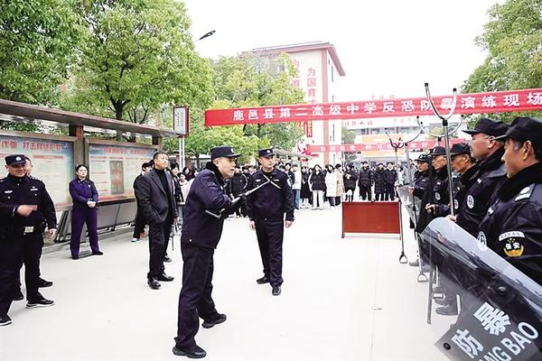 為進一步加強校園安全管理,確保廣大師生生命安全,12月4日,在鹿邑縣公安局衛真派出所民警的指導下,縣第二高級中學組織安保人員開展反恐防暴演練。