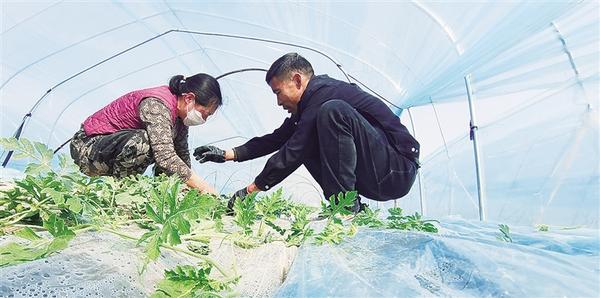 3月15日,在扶溝縣江村鎮(zhèn)江北村現(xiàn)代農(nóng)業(yè)產(chǎn)業(yè)園的大棚里,農(nóng)戶(hù)在管理西瓜苗。該園區(qū)占地500余畝,主要種植麒麟美都西瓜、太陽(yáng)花水果玉米、優(yōu)質(zhì)菠菜,預(yù)計(jì)每畝年綜合收益1.2萬(wàn)元,輻射帶動(dòng)周邊200余名群眾在家門(mén)口就業(yè)。