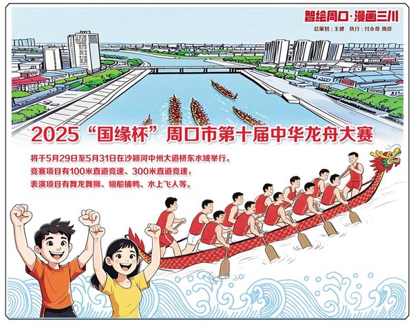 年度盛宴!2025“國緣杯”周口市第十屆中華龍舟大賽將于5月29日至5月31日在中心城區沙潁河中州大道橋東水域舉行。競賽項目有100米直道競速、300米直道競速,表演項目有舞龍舞獅、翎船捕鴨、水上飛人等。賽事設置縣(市、區)組、單位組、社會企業組、高校組、街道社區組五大組別。