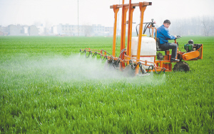 3月7日,一農民正在麥田里噴灑農藥。早春時節,氣溫逐漸回暖。各地農民搶抓農時全力投入春耕備耕生產,田間地頭處處一派繁忙景象。