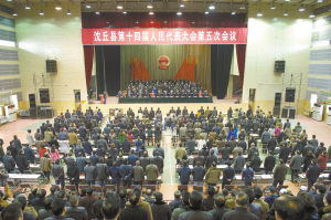 縣人大常委會主任段傳文向大會作人大工作報告。段傳文指出,一年來,縣人大常委會堅持以習近平總書記系列重要講話精神為引領,深入貫徹落實黨的十八大和十八屆三中、四中全會精神,緊緊圍繞縣委重大決策部署,秉承監督有據、監督有理、監督有力、監督有效的工作理念,在縣委領導下,圍繞促進改革開放、回應社會關切、健全和完善法治,依法積極履職,為全面建成小康社會、爭當周口崛起科學發展排頭兵、建設出彩沈丘提供了有力的民主和法制保障。