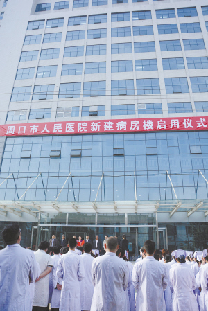 本報訊 4月24日,周口市人民醫院新病房樓舉行啟用儀式,標志著這一重點民生工程即日起正式投入使用(左圖)。新病房樓的投入使用,將大大改善人民群眾的就醫環境,成為保障人民群眾醫療健康的一支重要力量。