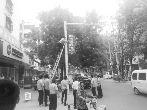 文明路亂裝亂掛的燈箱、條幅廣告嚴重影響城市形象,被川匯區城管人員依法強制拆除。