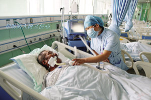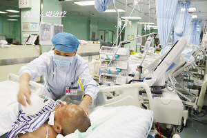 當然,護理工作并非一帆風順。眾所周知,ICU收治的都是重癥患者,患者大多數都有精神障礙,譫妄、昏迷、煩躁不安等狀況很常見,這就需要護士們充滿耐心和愛心。張衛華以實際行動詮釋人間大愛。2014年8月,科室里來了一名Ⅱ級肝性腦病的男性患者,已經精神錯亂且不認人,行為非常危險。由于該病不能使用鎮靜藥物,當責任護士靠近患者時,患者拿起床頭柜上的一個玻璃瓶向護士砸去。作為護士長的張衛華見此情景,臨危不懼,用自己的身軀保護責任護士。只聽見啪的一聲,鮮血順著她的臉頰流了下來,可她還是慢慢走向那名患者,輕聲向他解釋情況以安撫其情緒。患者的情緒漸漸地穩定下來,她才去處理傷口,并輕松地說:“只要沒傷著病人就好。”有一次,科室里來了一名心梗住院的老人,老人的孩子都在外地,得知老人生病住院也沒趕回來照顧,甚至連一句問候都沒有。老人除了要忍受著病痛的折磨,還要忍受對孩子們的思念。張衛華見此情景,非常心疼,為安慰老人,上班期間她都會去陪老人聊天,哄老人開心。老人吵著不舒服的時候,張衛華用藥緩解,同時耐心安撫老人。晚上老人因為孩子的事情,會像一個小孩兒一樣哭泣不止,張衛華心疼地陪在老人身邊,一遍又一遍地安慰說:“別害怕,我在您身邊,我就是您的女兒。”