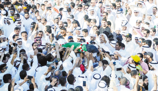 科威特民眾悼念清真寺爆炸事件遇難者 6月27日,民眾在科威特北部蘇萊伊哈特陵園參加活動,悼念伊瑪目薩迪克清真寺爆炸事件的遇難者。科威特數千名民眾27日在科北部蘇萊伊哈特陵園悼念伊瑪目薩迪克清真寺爆炸事件的遇難者。