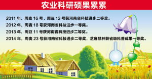 目前,全市農業科研系統包括1個市級農科院和5個縣級農科所。全市農科系統現有干部職工347名,其中專業技術人員161名,其中有研究員16名,副研究員29名,博士、碩士22名,享受國務院特殊津貼專家15名,省優秀專家3名,省級學術技術帶頭人6名,市級優秀專業技術人才24名。從以上數據可以看出,我市農業科研人員中,專家和學科帶頭人數少,急缺博士、碩士等高層次農業科技人才。即使在這樣的情況下,周口農業科研人員也沒有懈怠,而是加倍付出,用自己的智慧和汗水,培育出了多個小麥和大豆新品種,獲得了一項又一項科技成果獎。五年來,市農科院獲得的河南省科技進步獎數量穩居河南省地市農科院前列,主要是集中在小麥育種和大豆育種上。這主要是與我市小麥、大豆育種居國內領先水平決定的。特別是小麥育種已成為全國優勢學科,相繼育成30多個小麥新品種,其中12個通過國家審定,13個通過河南省審定,創育了享譽全國的“周麥”品牌,市場占有率高、美譽度好。2015年周麥系列品種在黃淮麥區累計推廣面積近3000萬畝,其中在河南省推廣2500萬畝,占全省小麥種植面積的28%,占周口小麥種植面積的75%,新增經濟效益20多億元,為全省、全市小麥連年增產做出了突出貢獻。