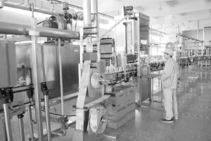 下圖:開發區因地制宜,大力發展農副產品精深加工產業。圖為娃哈哈飲料恒楓飲料有限公司灌裝、包裝車間。