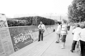7月1日至3日,太康縣國土資源管理局組織開展建黨94周年紅色宣傳活動。圖為該局退休職工韓其功義務向行人講解毛澤東、周恩來、劉少奇等老一輩無產階級革命家的豐功偉績,傳播時代正能量。(王立平 封艷華 攝)