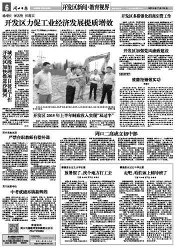 開發區2015年上半年財政收入實現“雙過半”