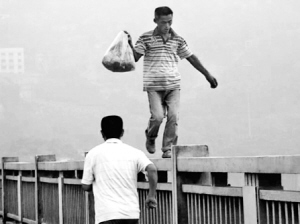 本報綜合消息 一位年過半百的老伯,竟然踩在大橋的欄桿上,閑庭信步(下圖)……這并非是武俠片中的片段,而是9月3日7時,掌上拍客張先生在重慶石板坡長江大橋拍攝到的一幕,張先生說,老伯在欄桿上行走的速度不輸給常人在大道上步行的速度。同時在網上,也有很多網友稱目擊到了這一幕,并將當時的所見所聞發在了網上,很多網友都稱老伯為“輕功哥”。