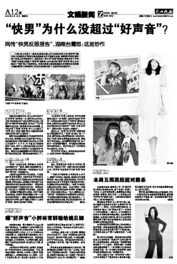 “快男”為什么沒超過“好聲音”?