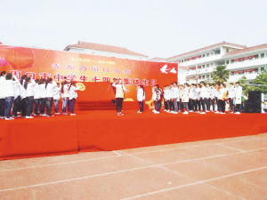 此次活動是由市文明辦、團市委、市教育局主辦。當日上午,在優美的樂曲中,活動正式拉開帷幕(如圖)。隨后,在少先隊退隊儀式上,學生們重溫入隊誓詞,揮手告別稚氣天真的童年,肩負起理想與責任向青春邁進。面對如此情境,家長也頗有感觸?!昂⒆樱斈氵€睡在我肚子里時,有空我就跟你說說我們之間的悄悄話。我知道,從此,我和你脈搏相連在一起……今年你14歲了,長大了,意味著你可以獨自承擔人生的風雨……爸爸媽媽也有許多人生經驗想與你分享交流,關于愛情、關于人生、關于事業……”。陳艷麗作為家長代表上臺,樸實的語言打動了在場的學生。